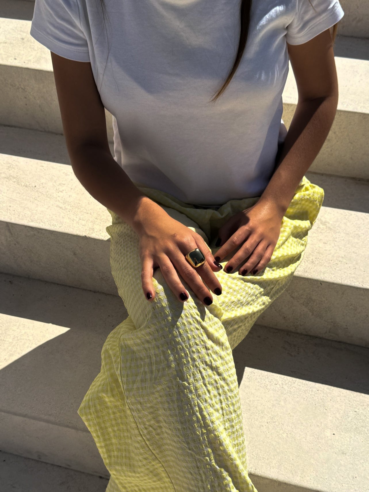 Anillo de acero inoxidable con acabado dorado brillante.