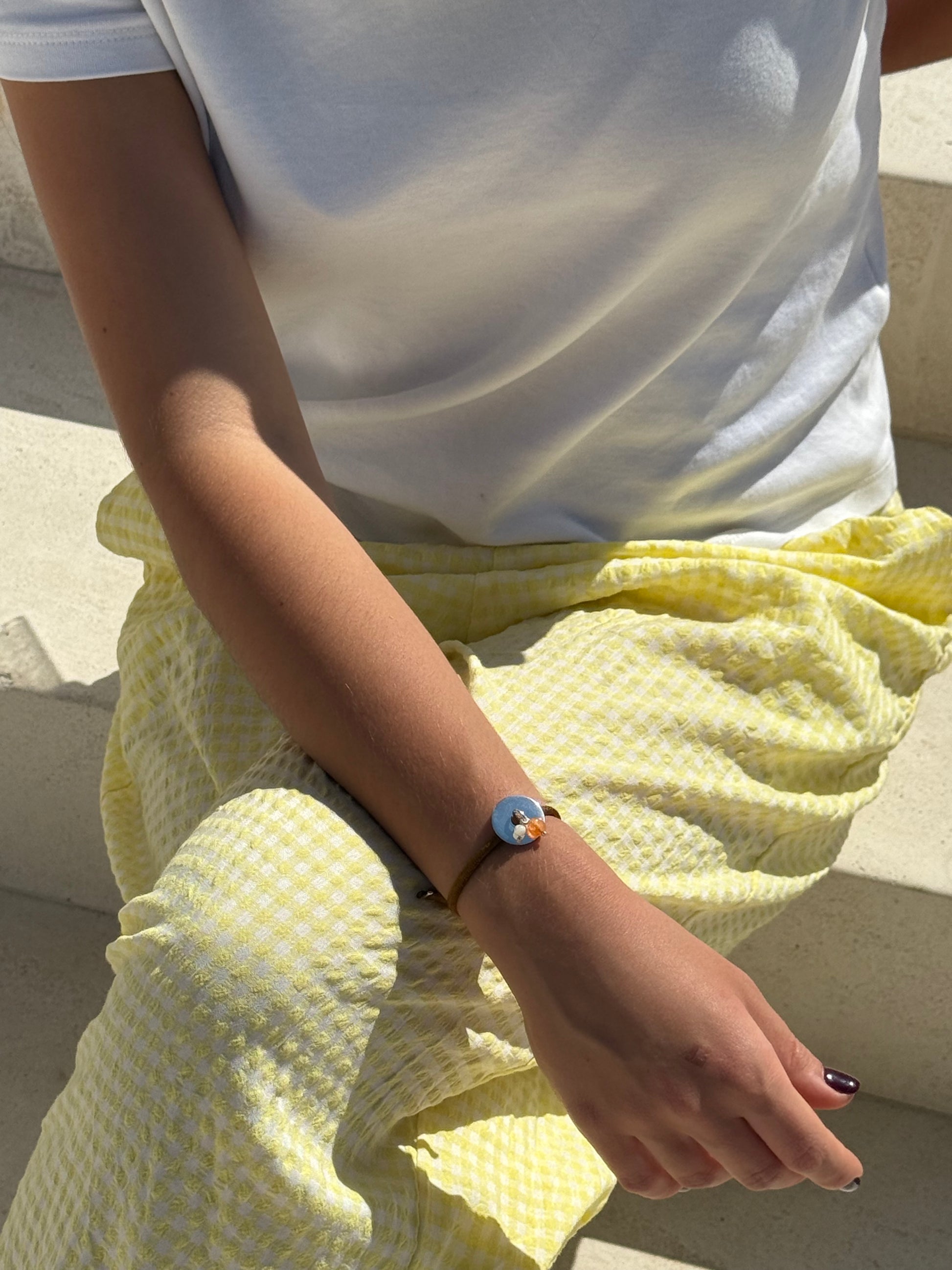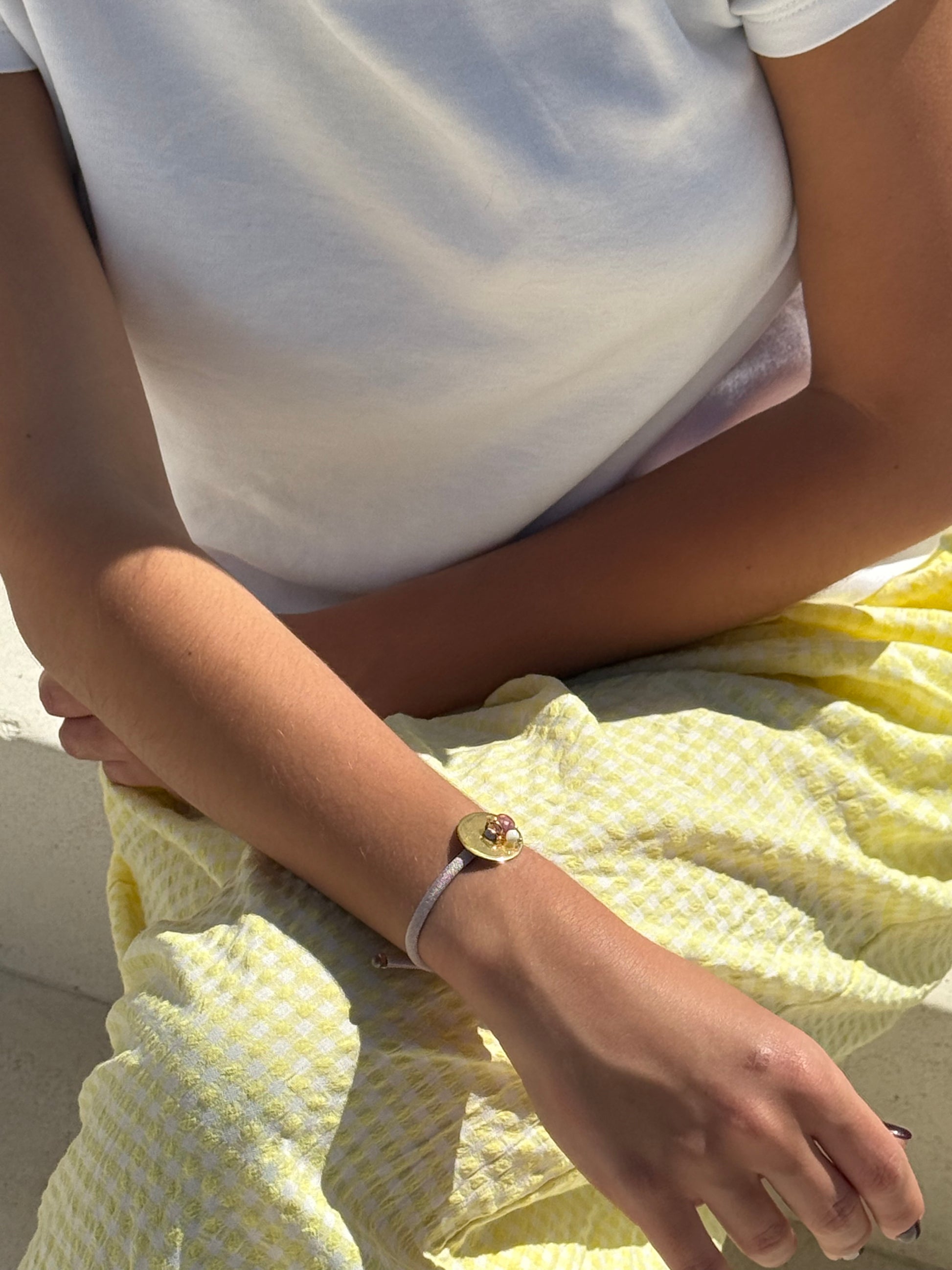 Pulsera de cordón elástico hecha a mano con un diseño único. Pieza de plata de ley.