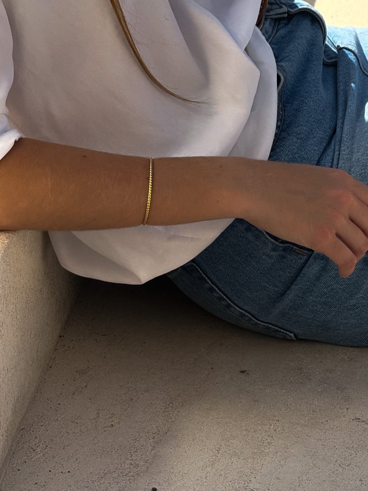 Pulsera esclava de plata de ley con baño de oro de una micra, ajustable, diseñada para adaptarse a cualquier muñeca.