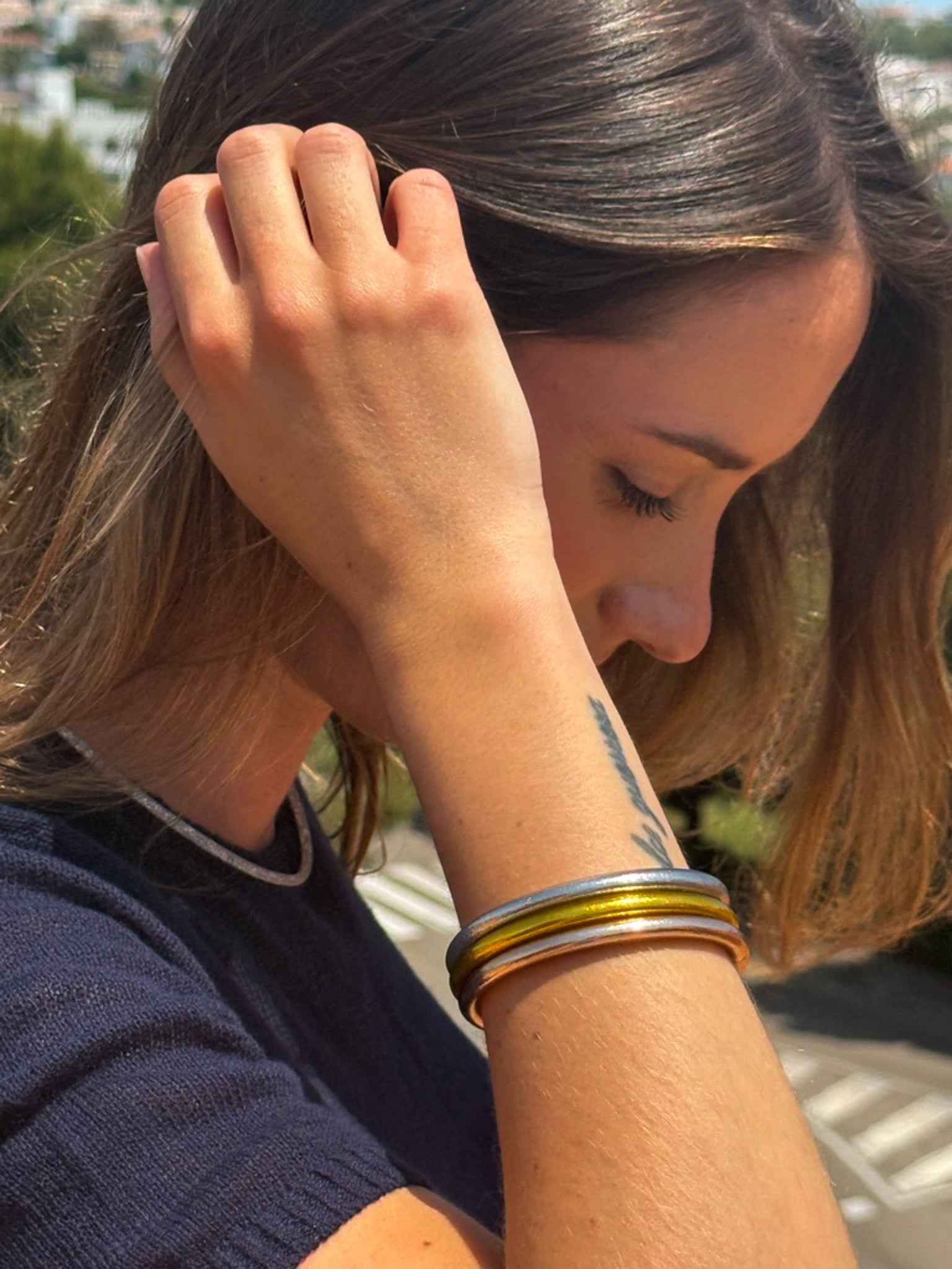 Conjunto de pulseras con pan de oro en su interior, cobre o plata.