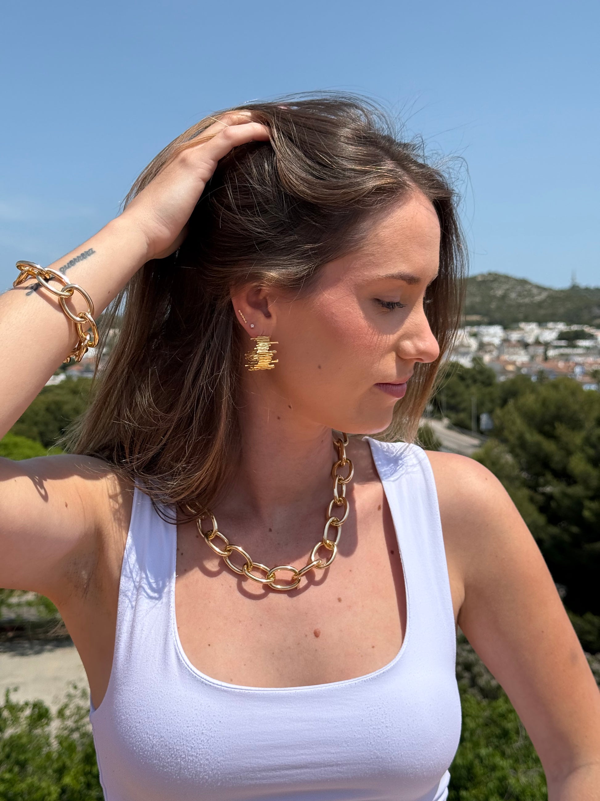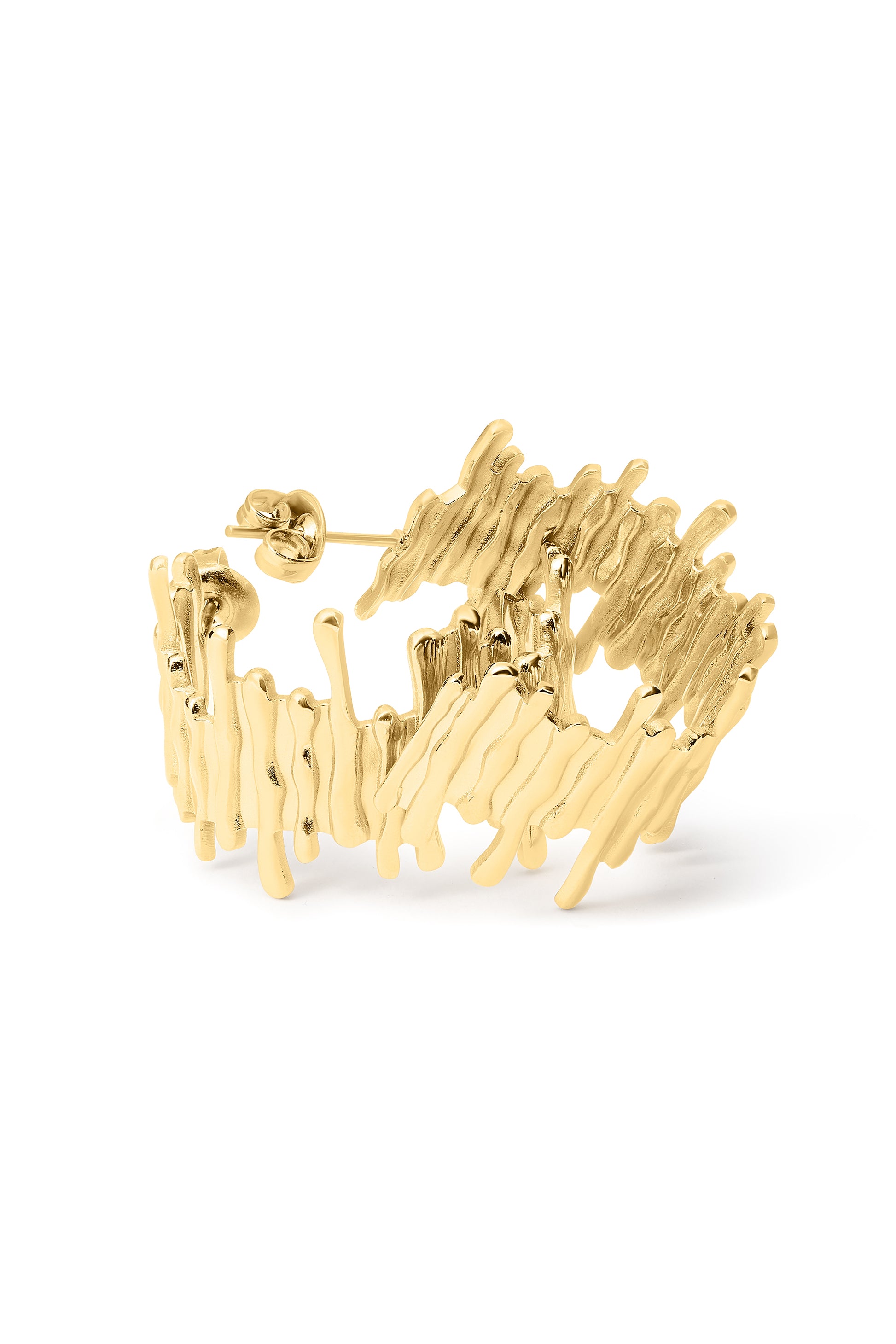 Pendiente de acero inoxidable con diseño abstracto en relieve. Una pieza atrevida y única que transforma tu estilo.