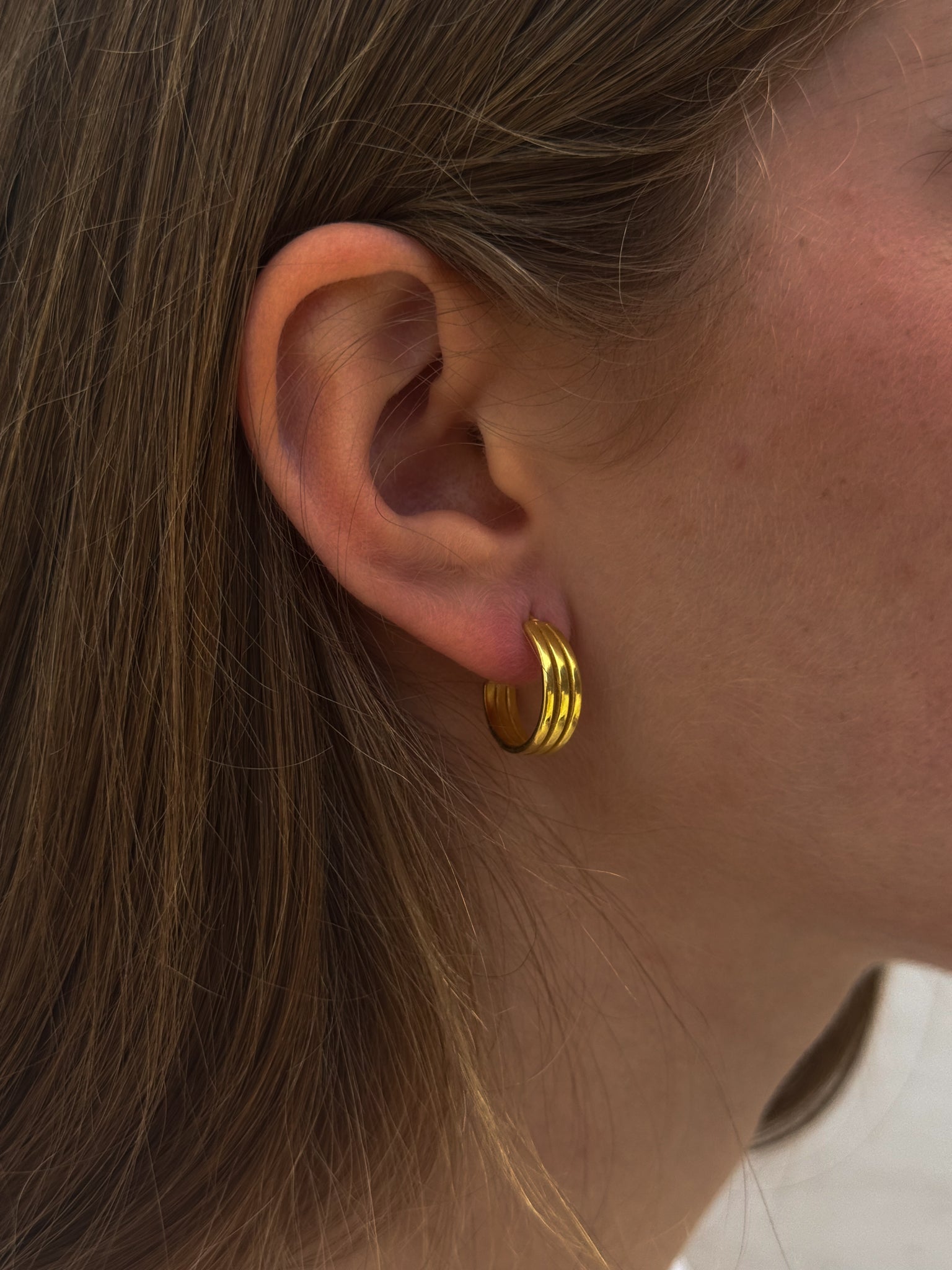 Aros de plata de ley con diseño de triple línea. Sofisticación con un toque contemporáneo.